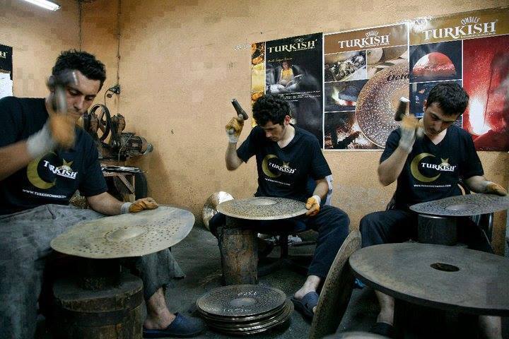 Proces produkcji sięga swoimi korzeniami do początków XVII wieku. Rozgrzane do czerwoności dyski są wypalane w specjalnych piecach. Brąz, czyli połączenie cyny i miedzi, przechodzi najpierw surową selekcję, zanim zostanie przetopiony na talerze. Płynny metal odlewany jest do form, które nadają przyszłemu talerzowi wstępny kształt. Po procesie schładzania dysk ląduje w tradycyjnym piecu, grzanym drewnem i węglem. Gdy każdy odlew nabierze solidnej konsystencji, zostaje dodana kolejna, koncentryczna warstwa na środku talerza - to przyszły bell. Po skrawaniu, blacha ląduje w warsztacie, gdzie jest ręcznie przekuwana - to największy sekret firmy Turkish. Każdy talerz jest dostrajany w zależności od swojego charakteru do pożądanej barwy i głośności. Po procesie przekuwania, kiedy blacha jest już perfekcyjnie skomponowana, trafia na proces skrawania i polerowania. Frezowanie oraz wycinanie specjalnych wersji także zachodzi na ostatecznym etapie produkcji. Polerowanie ręczne to żmudny proces, który wieńczy skomplikowaną operację.